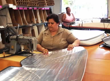 This product is made in the U.S.A. and designed to be placed on the inside of your windshield while your vehicle is parked to block the sun’s blazing heat and UV rays from beating up your vehicle’s interior. In conjunction with our FormulaOne Performance Automotive Films on the sides and rear windows of your vehicle, our HeatShield™ will keep the inside of your car much cooler. HeatShield is an automotive windshield reflector, custom designed to fit the shape of each model's windshield. The HeatShield material is simple and unique. A special metallized polyester film, laminated to a thin layer of closed-cell foam, with a clear polyester film back. HeatShields are custom cut using the latest in computer-aided cutting technology. Then they are sewn around the edge with a cloth binding to eliminate tearing like the cheap imitations sold in department stores. Priced starting at $79.95 each (including freight - 7-10 day lead time needed).