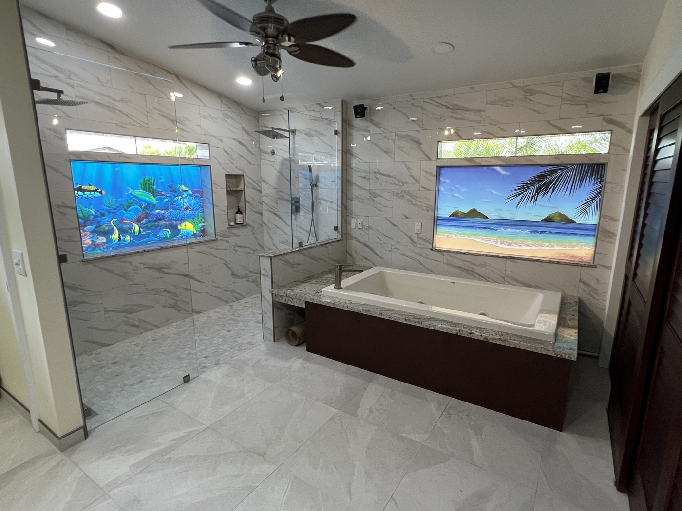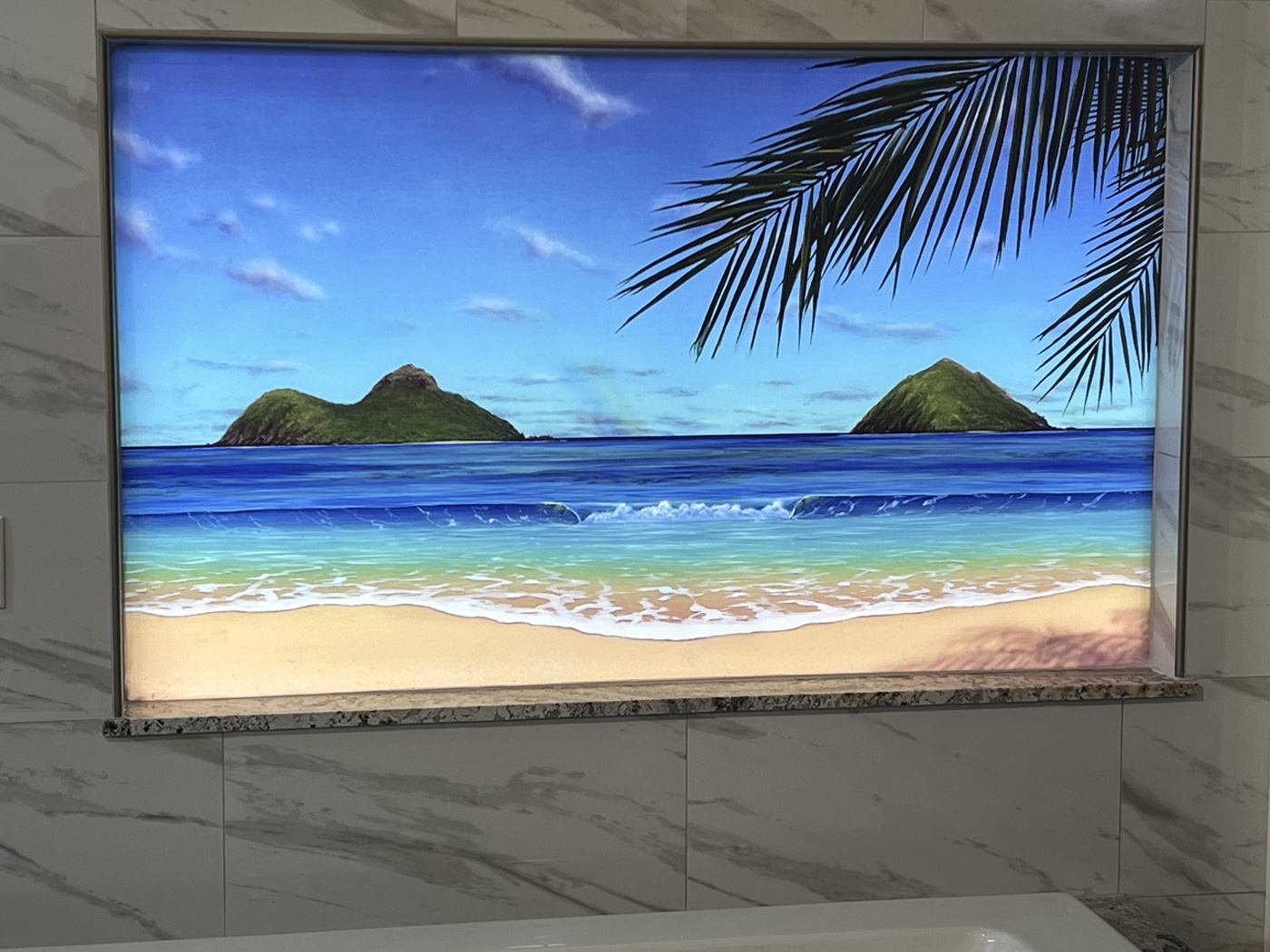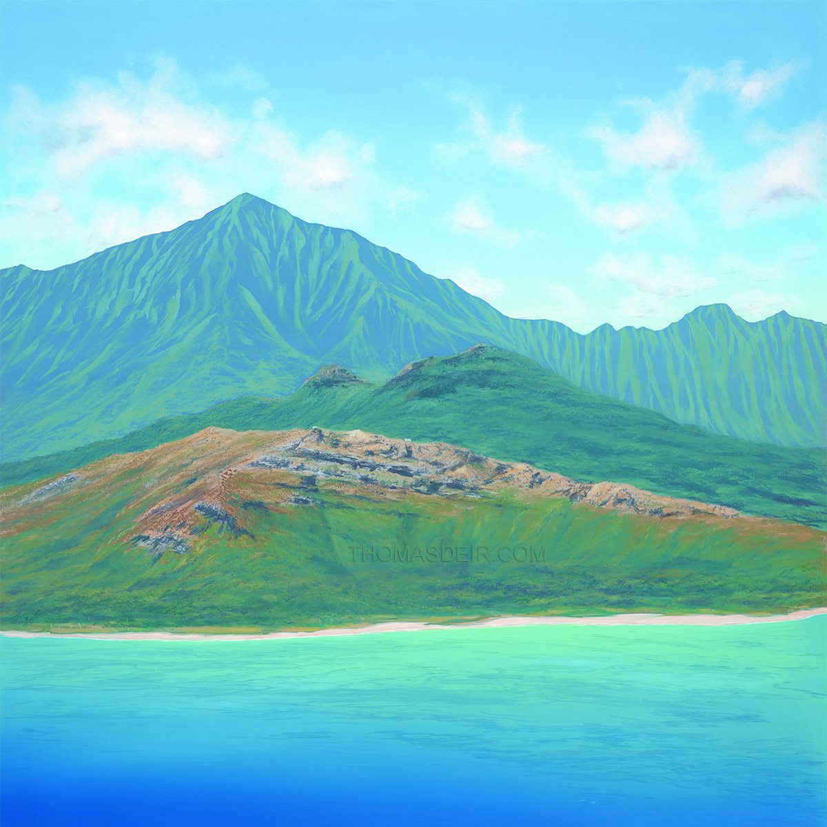 Kailua artist Thomas Deir specializes in tile murals and paintings for homes and businesses. His clientele spans from art collectors around the world to homeowners looking for something unique for their kitchen backsplash, shower wall, or entryway, and now, with this unique collaboration with the folks here at T&T Tinting, WINDOW ART!. Thomas' diversity of subject matter ranges from undersea reef scenes and dolphins to sunsets and seascapes to volcanoes erupting on the Big Island. He thrives on the gratitude and positive energy he gives and receives from the people who come to know him and his art. Now more people can enjoy Thomas' art via this collaboration of mediums... T&T Tinting's Glass Graphics and Thomas Deir's incredible artwork!