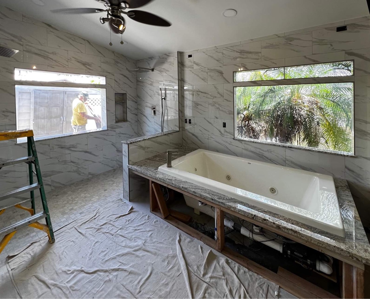 This client wanted to solve the problem of allowing too much light in, while obscuring the view and adding privacy from outside the bathroom looking in. Originally, they considering glass tile, but that was very costly and not within their budget. The affordable and stylish solution was T&T Tinting's Printed Window Graphics utilizing a couple of Thomas Deir's Fine Art Prints printed directly onto window film instead of onto canvas. The process was very easy; the client chose two paintings from local artist Thomas Deir's catalog. Once approved, the 2 large prints were created and installed.