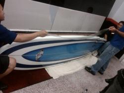 It is pre-cut for a Do-It-Yourself application and is 6.5 feet long and available in THREE protection heights; 2 1/4" tall (Regular size), 3 1/4" tall (Large size) and finally 5 1/2" tall x 8 feet long (XLG- Downwind Racer sized) to cover the most vulnerable parts of your Stand Up Paddleboard to protect it from nicks, scratches and scrapes especially while learning, training, surfing or racing in rougher waters. The Do-It-Yourself kit comes with 2 Crystal Rails perfectly pre-cut Rail Guards, a rubber squeegee and installation instructions for $49.95 (Reg), $59.95 (Lg) and $99.95 (XLG). If you are on Oahu and want it professionally installed, bring your Board along with $25 to the Airport T&T Tinting location at 3035 Koapaka Street and we will have it installed for you in about 60 minutes (call ahead to ensure turnaround time). Allow least 24 hours drying time prior to going into the ocean!